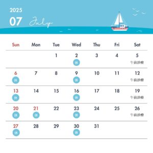 7月2日、6日、9日、13日、16日、20日、21日、23日、27日、30日は休診日です。