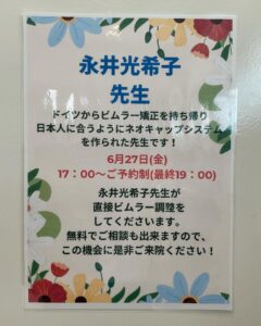 いよいよ来週27日(金)にネオキャップビムラー矯正の日本第一人者、永井光希子先生が来院されます✨